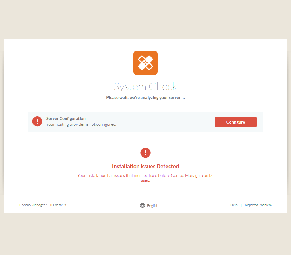 You should arrive at the System Check, and most likely your Hosting Provider will not be automatically configured.