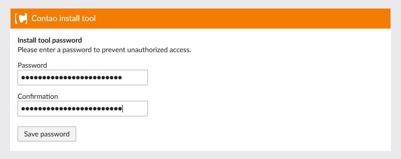 Enter a secure password for the Install Tool. You shouldn't need this password too frequently. Click 'Save password' to continue to the next step.